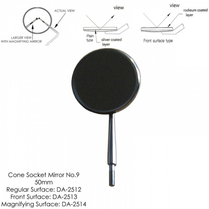 Cone Socket Mirror No.9 50mm Regular Surface:DA-2512 Front Surface:DA-2513 Magnifying Surface:DA-2514